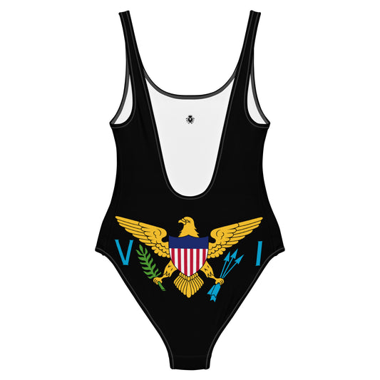 U.S. Virgin Islands Flag Swimsuit – USVI Caribbean One-Piece Swimwear (Black)